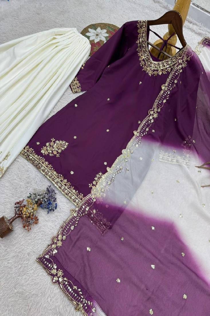 | Product Description | Bright And Festive, This White & Purple Anarkali Set Offers A Structured Bodice And Elegant Flare. Paired With A Matching Dupatta, It Creates A Refined Ethnic Look. Perfect For Weddings, Sangeet Nights, And Grand Celebrations. |