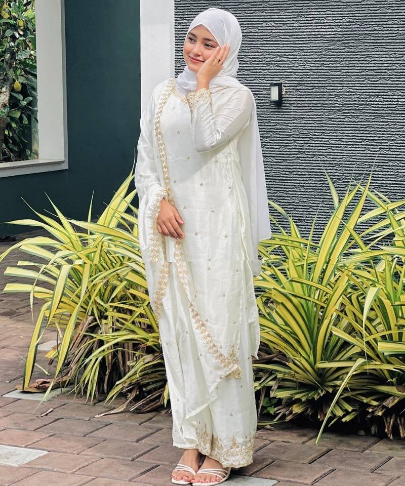 | • | Dupatta | : | Color- White / Fabric- Silk Blend |