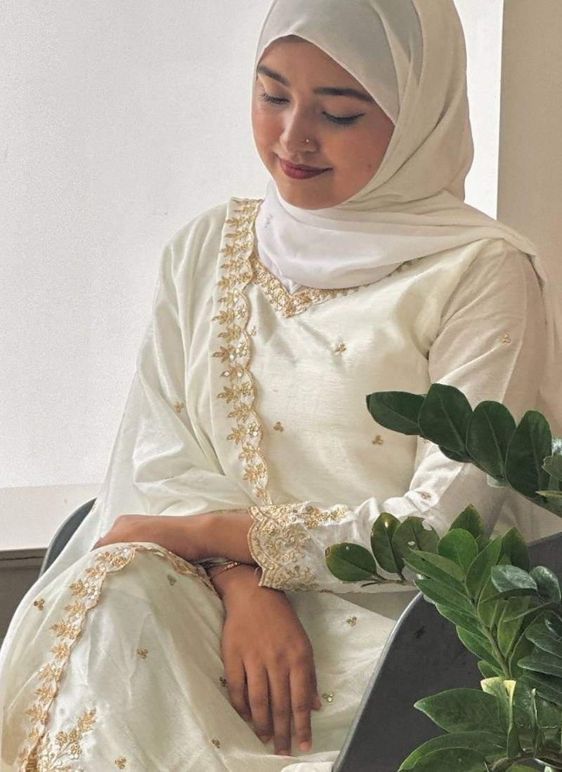 | Product Description | Embrace Serenity In This White Silk Salwar Kameez. Adorned With Delicate Gold Zari Embroidery And Sequin Accents, This Three Piece Set Exudes Luxury And Charm. The Lightweight Fabric And Classic Cut Provide Effortless Comfort For Daytime Festivities Or Religious Ceremonies, Offering A Clean, Polished Look For The Modern Woman. |