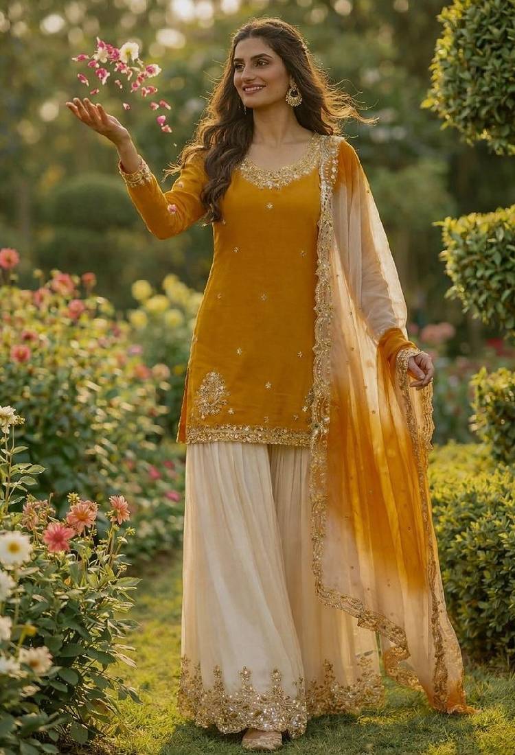 | Product Name | White & Yellow Sharara Set | |
