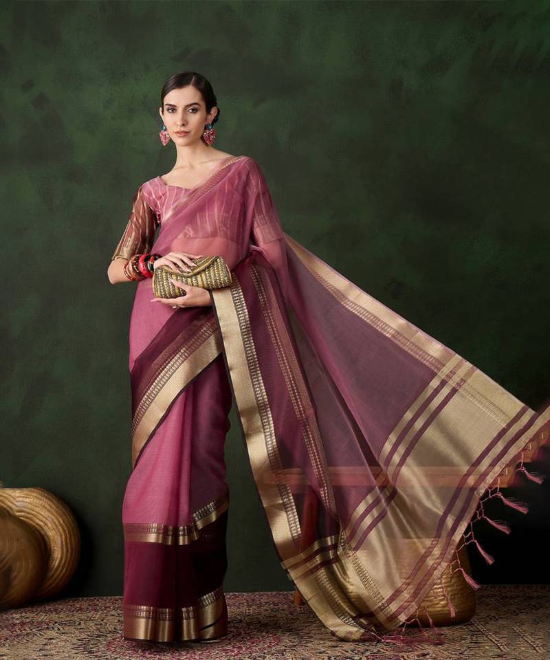 | Product Name | Wine Cotton Silk Saree With Gold Zari Border. | |