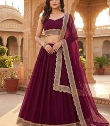 Wine purple lehenga set with dupatta and lace detailing
