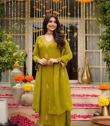 | Product Description | Elevate Your Ethnic Wardrobe With This Sophisticated Yellow Kurta Set. Featuring Intricate Lime Green Embroidery On The Neckline And Sleeve Cuffs, This Ensemble Offers A Refined Aesthetic. The Matching Straight Fit Trousers And A Lightweight, Printed Lime Green Organza Dupatta Complete This Graceful, Timeless Look. |