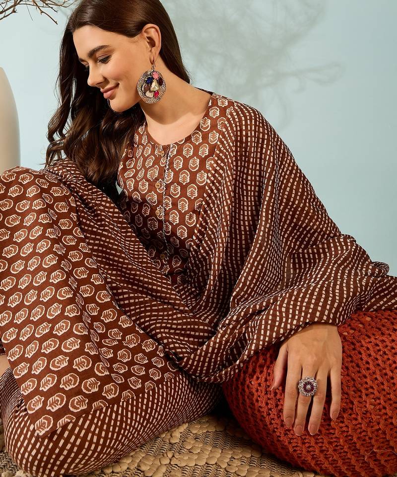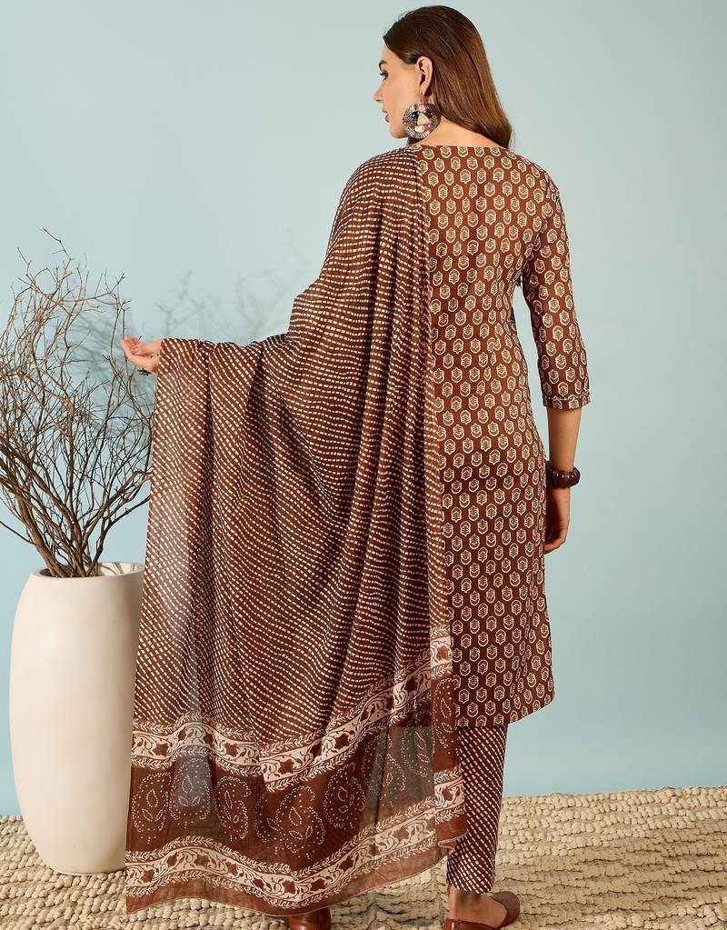 | Product Name | Chocolate Floral Print Cotton Straight Kurta Pant With Dupatta Set | |