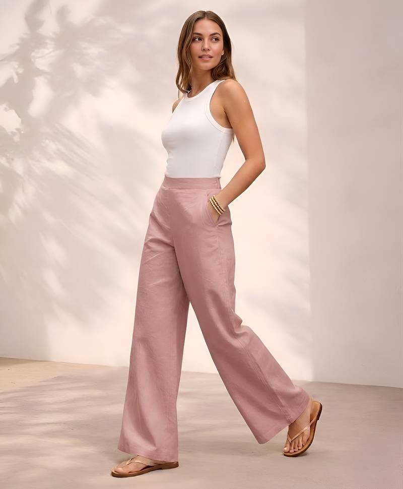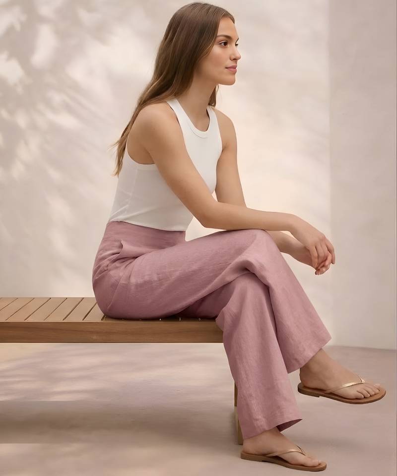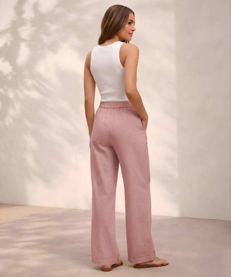 Rose casual linen blend straight fit pants