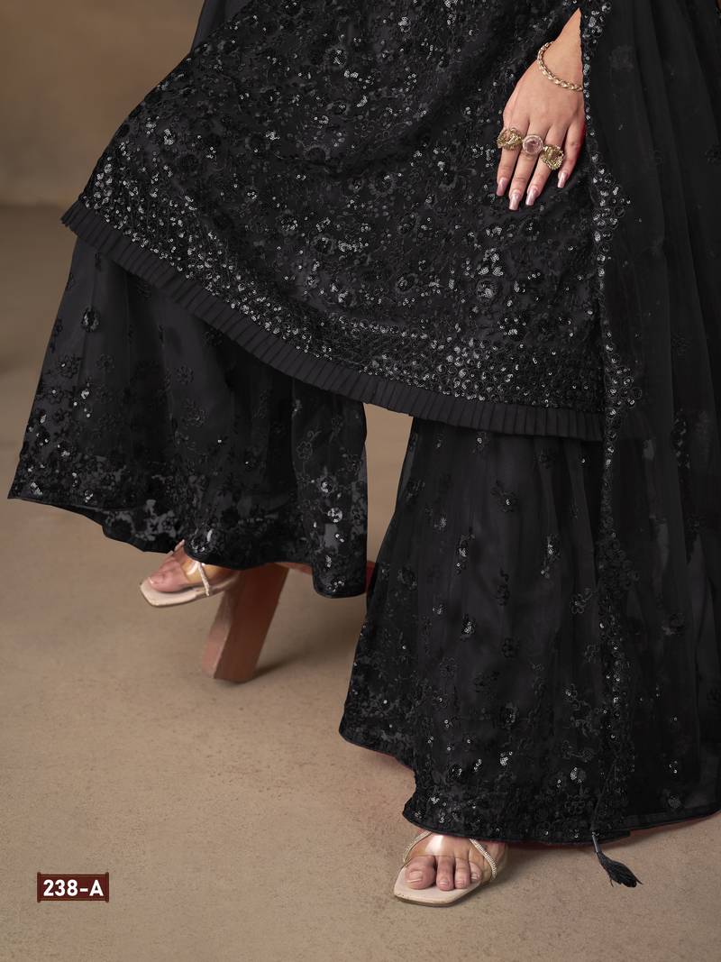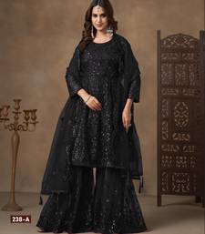 Black embroidered sharara suit semi stitched