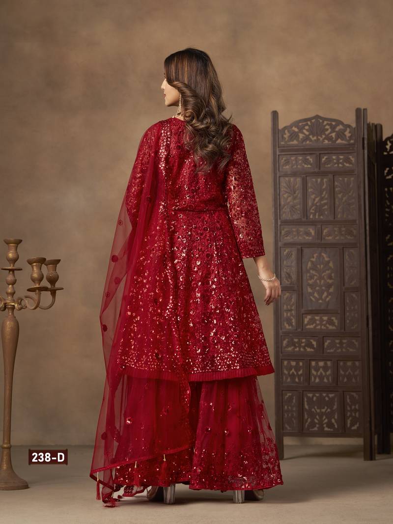 Product Name Red Embroidered Sharara Suit