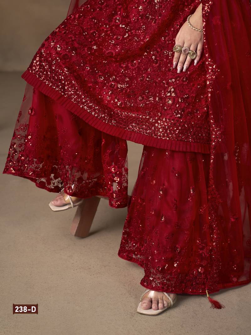 Red embroidered Sharara suit