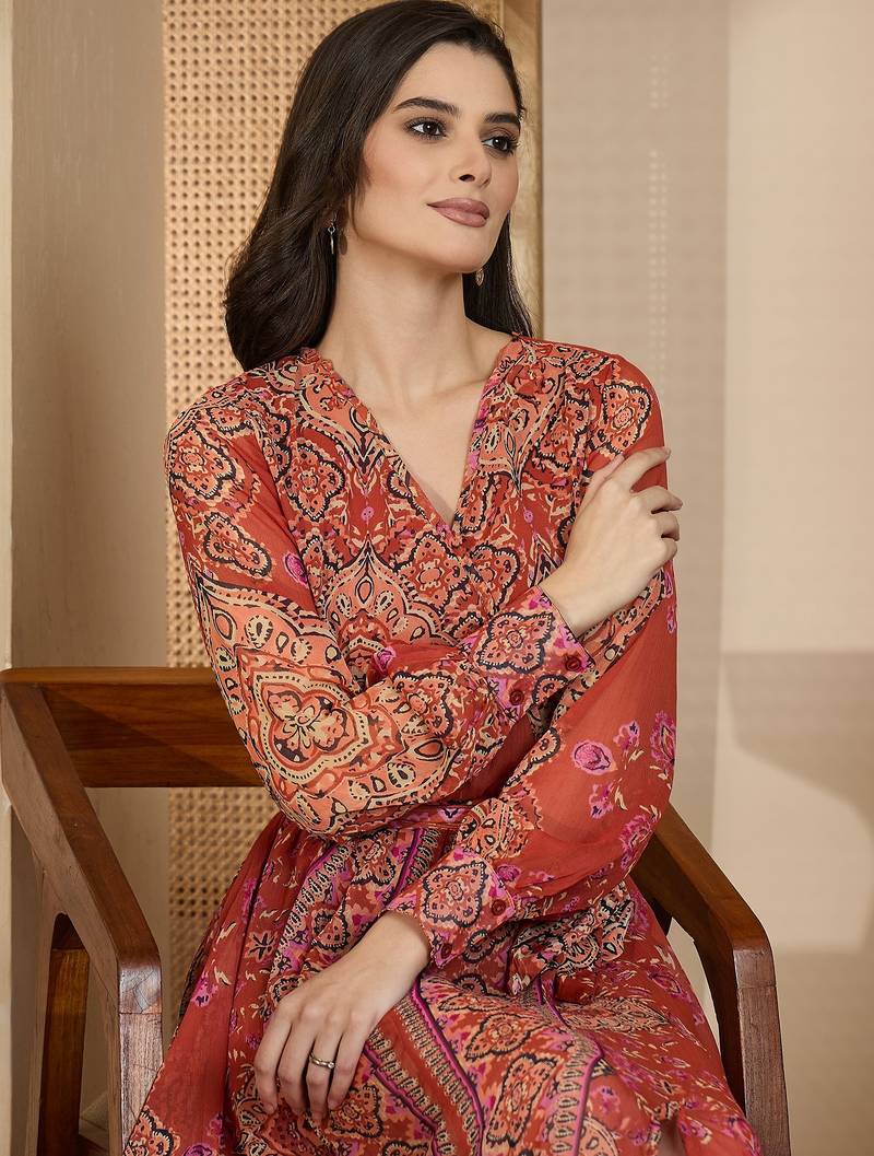 | Product Description | This Beautiful Maxi Dress Features A Sophisticated, Nature Inspired Print, Blending Earthy Neutrals With Delicate Pops Of Color. The Print Has A Detailed, Tapestry Like Quality, Incorporating Intricate Abstract Patterns In Shades Of Beige And Black, Highlighted By Vines Of Rust Red And Subtle Green Florals.