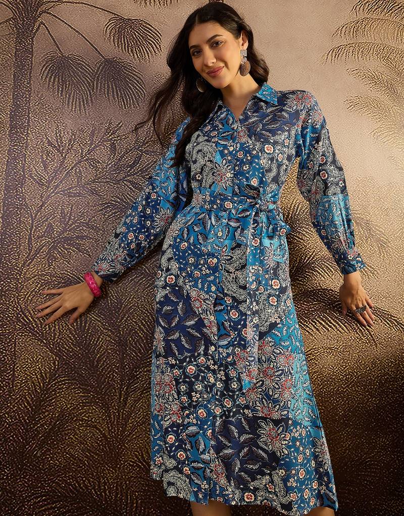 | Product Name | Women's Printed Fit And Flare Blue Viscose Blend Dress | |