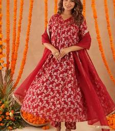 Geet red brocade anarkali set stitched