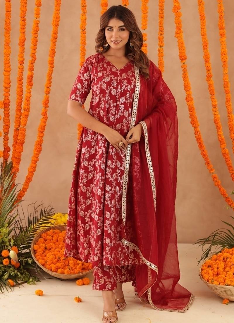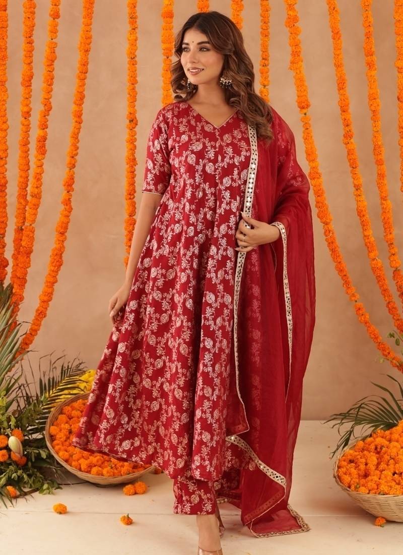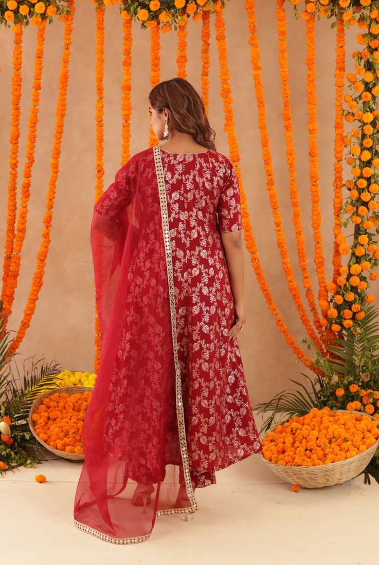 | Product Name | Geet Red Brocade Anarkali Set | |