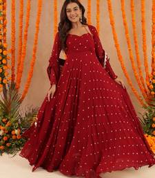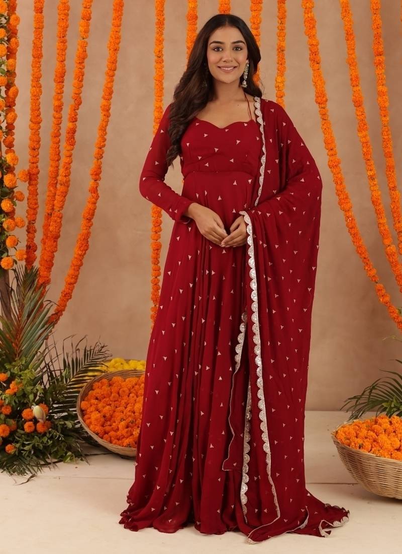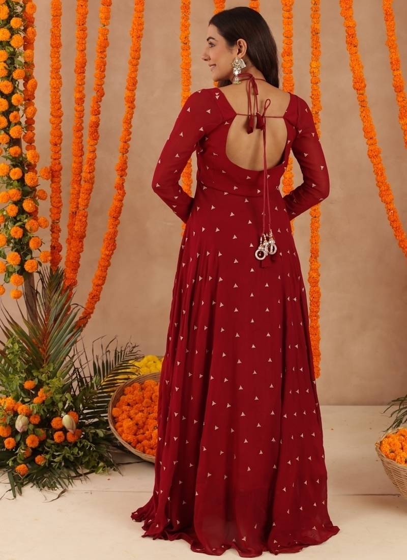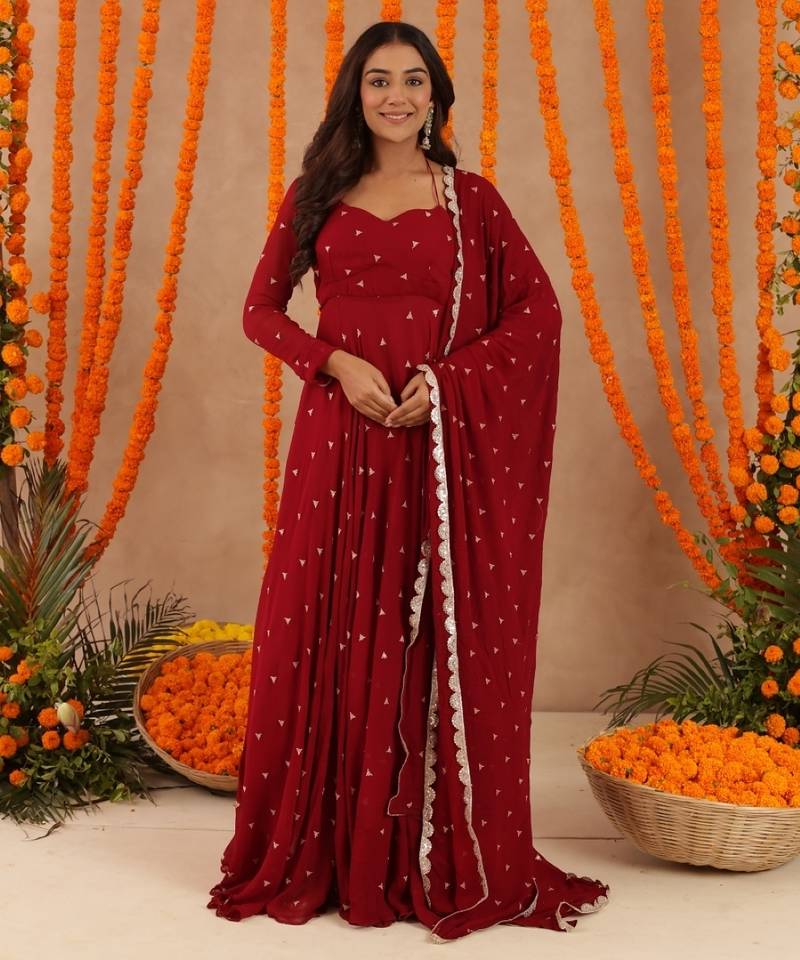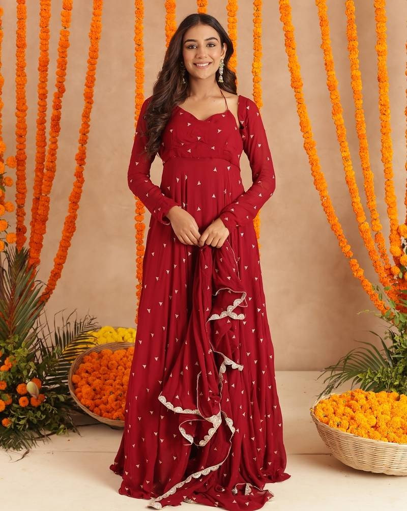 Ishani red anarkali set stitched