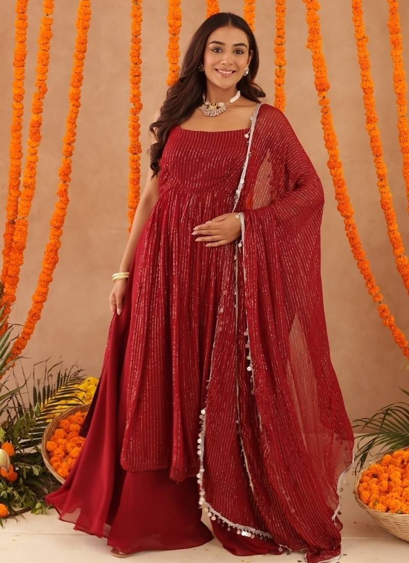 | • | Kameez | : | Color- Red / Fabric- Georgette |