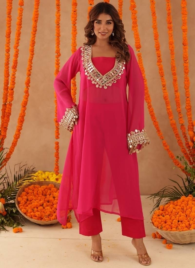 | Product Name | Ketaki Pink Mirror Lace Work Fusion Set | |