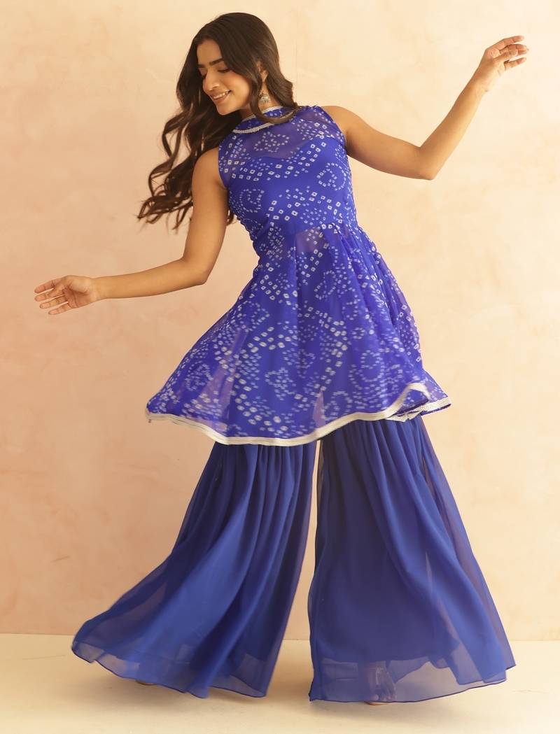 | Product Name | Krisha Blue Bandhej Sharara Coord Set | |