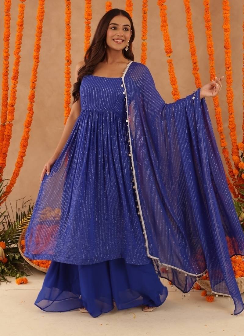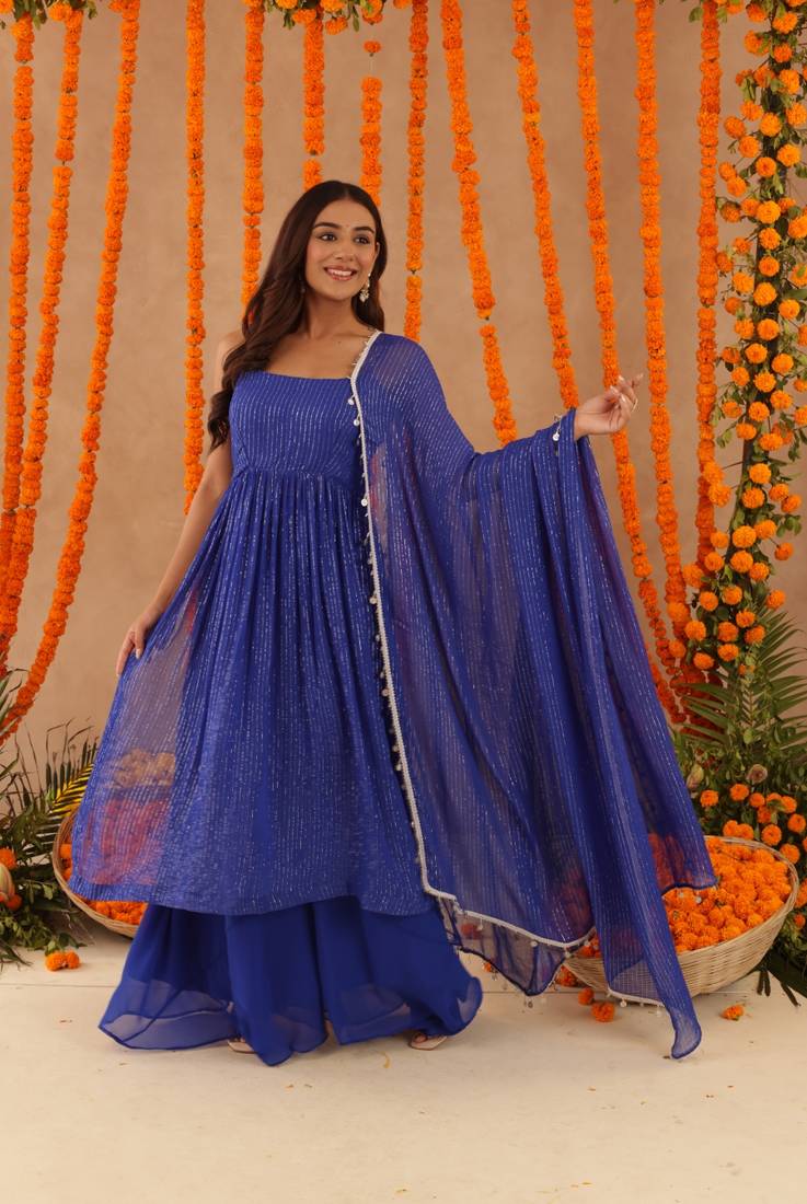 Mishti blue lurix kurta set stitched