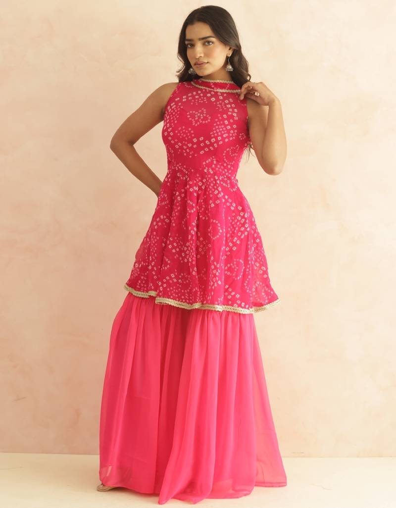 Prisha pink bandhej sharara coord set stitched