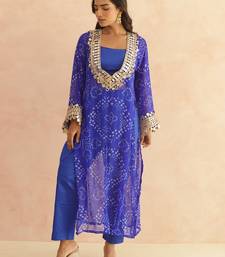 | Product Name | Ravina Royal Blue Bandhej Mirror Lace Work Fusion Set | |
