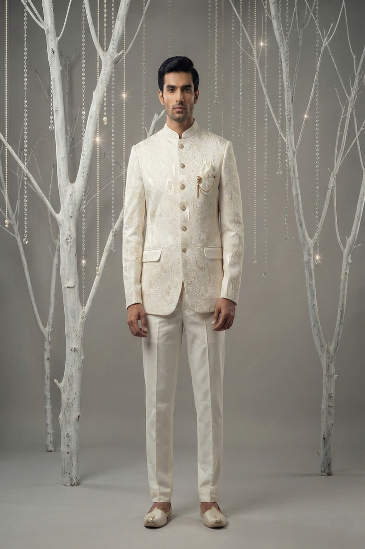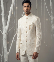 Product Name Ivory Thread Embroidered Bandhgala On Silk