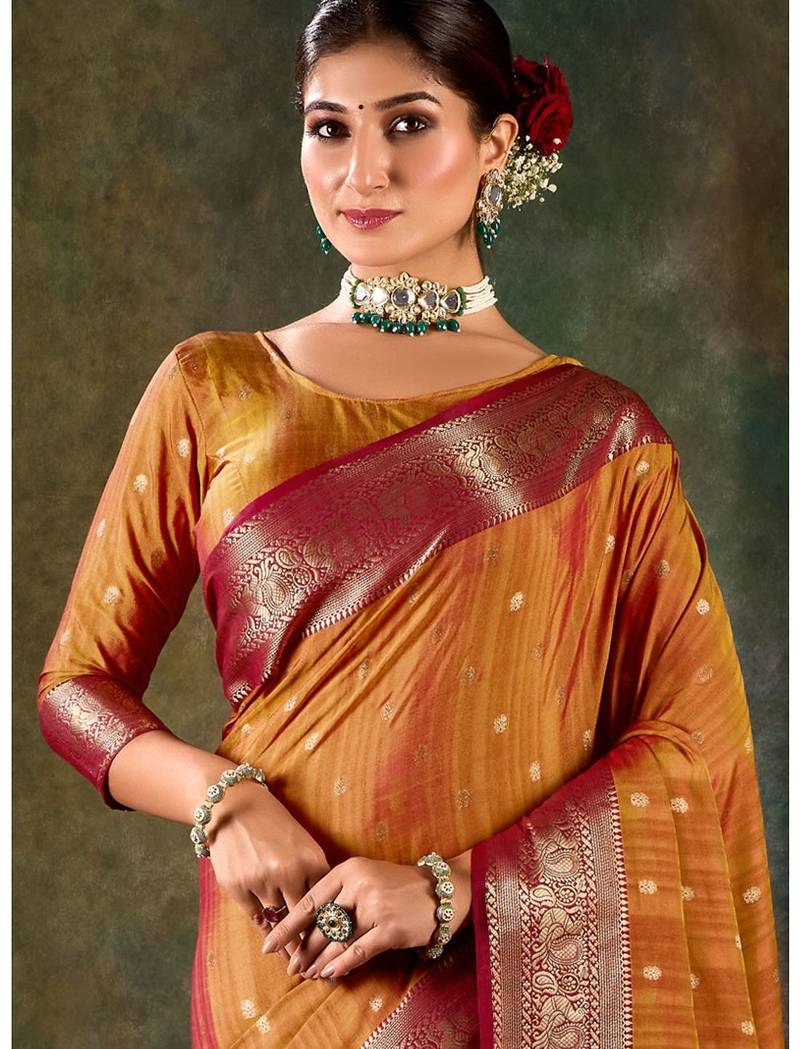 | Product Name | Amber Gold Banarasi Silk Saree With Crimson Zari Border | |