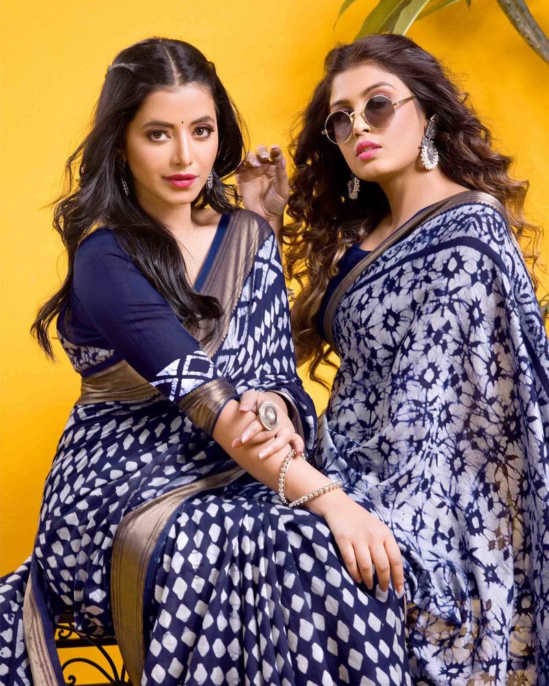| Product Name | Navy Blue Geometric Diamond Motif Saree | |