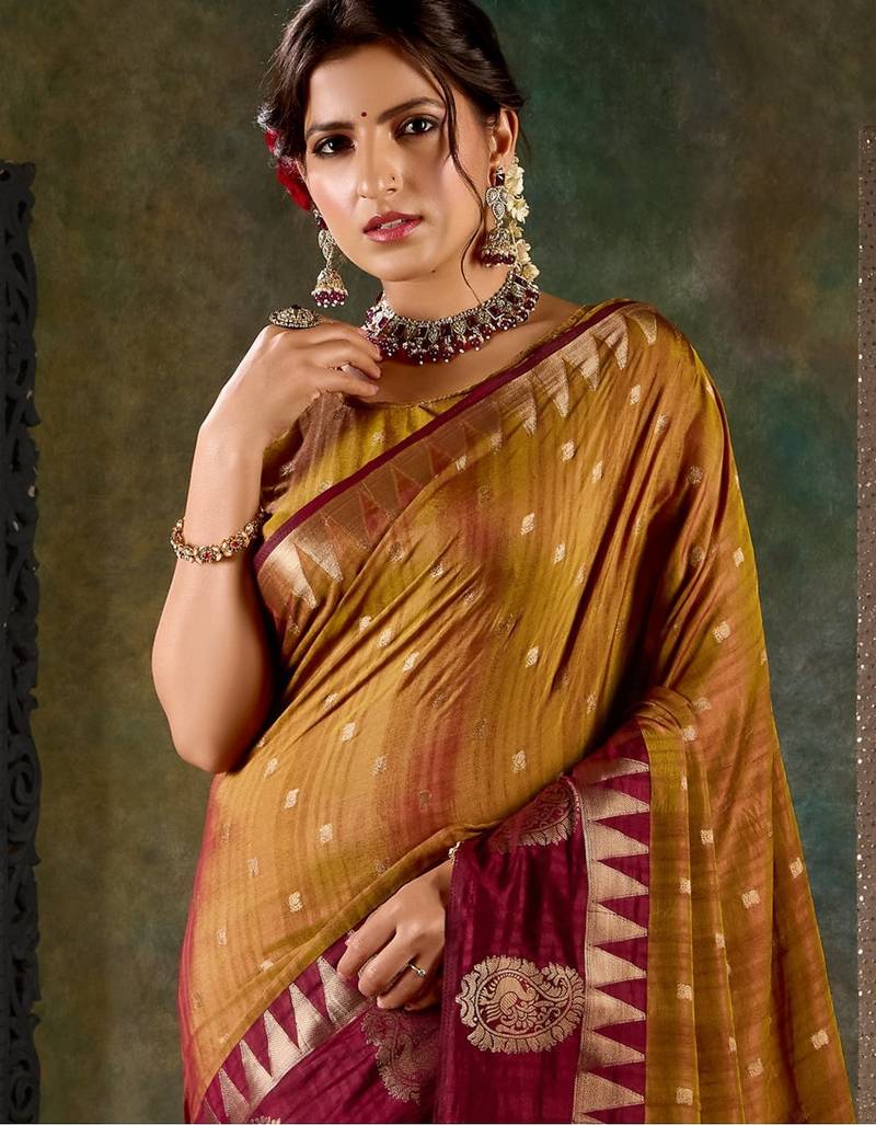 Rust & maroon banarasi silk sarees with traditiinal zari work