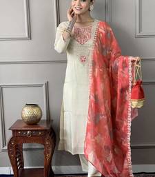 | • | Dupatta | : | Color- Cream / Fabric- Silk Blend |