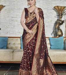 Dark maroon faux banarasi jaal katan silk zari woven saree