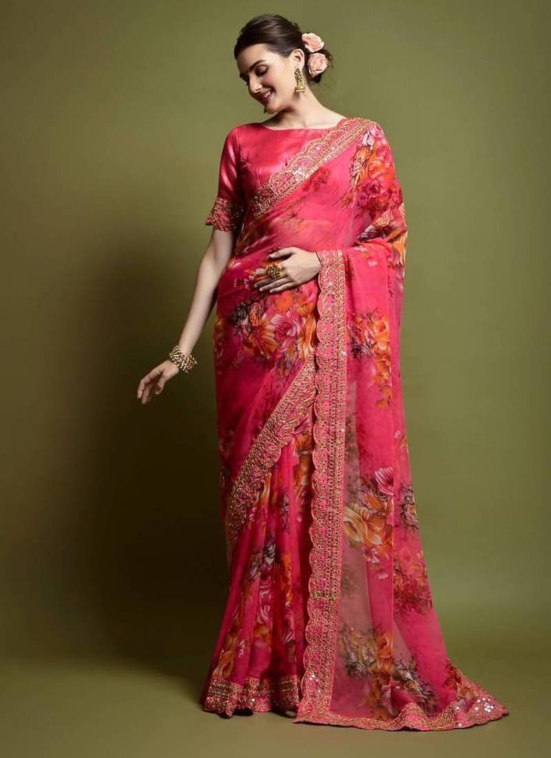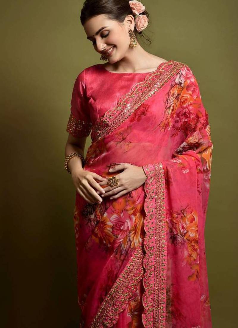 | Product Name | Pink Flower Print And Cut Work Saree With Sequin Embroidery Work | |