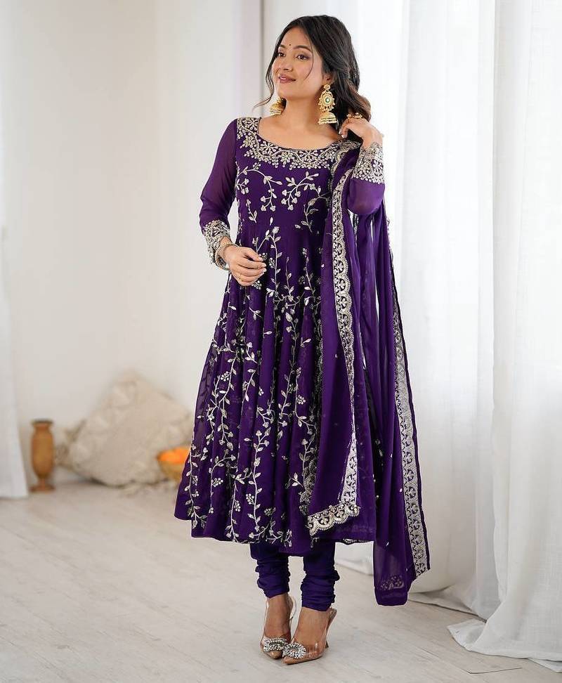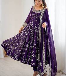 Purple hevay faux georgette embroidery work gown stitched
