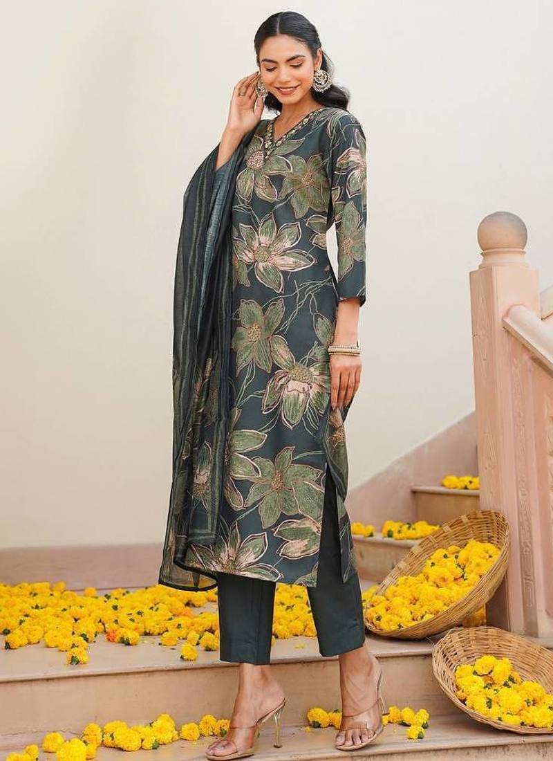 | Product Name | Women Green Rayon Blend Floral Printed Straight Kurta Trouser With Dupatta | |