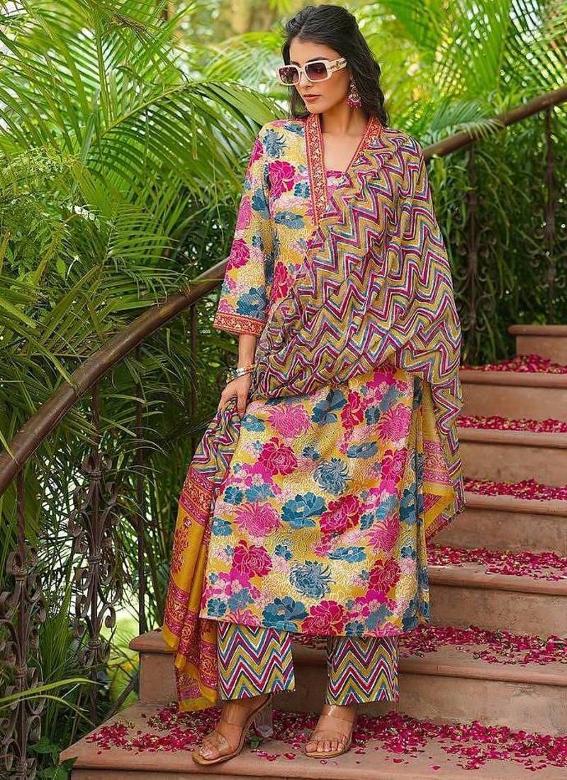 | Product Name | Women Yellow Rayon Blend Floral Printed Straight Kurta Palazzos With Dupatta | |