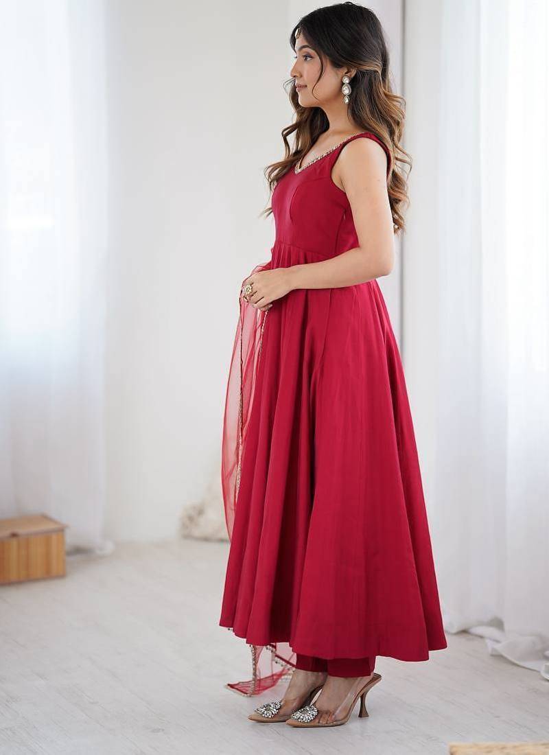 | Product Name | Pure Romansilk Chanderi Fabric Fully Flare Anarkali With Pant Dupatta Set Ready To Wear | |