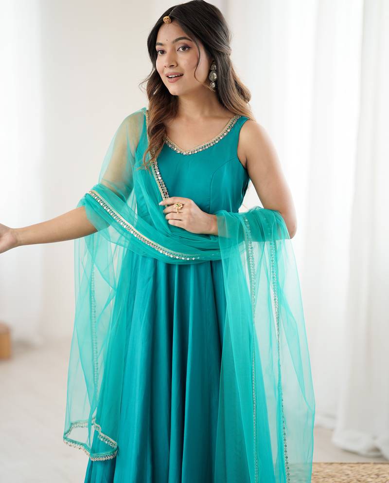 | Product Name | Pure Romansilk Chanderi Fabric Fully Flare Anarkali With Pant Dupatta Set Ready To Wear | |
