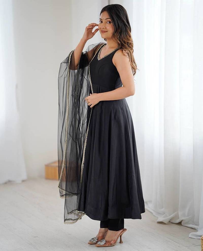 | Product Name | Pure Romansilk Chanderi Fabric Fully Flare Anarkali With Pant Dupatta Set Ready To Wear | |