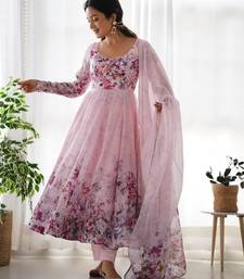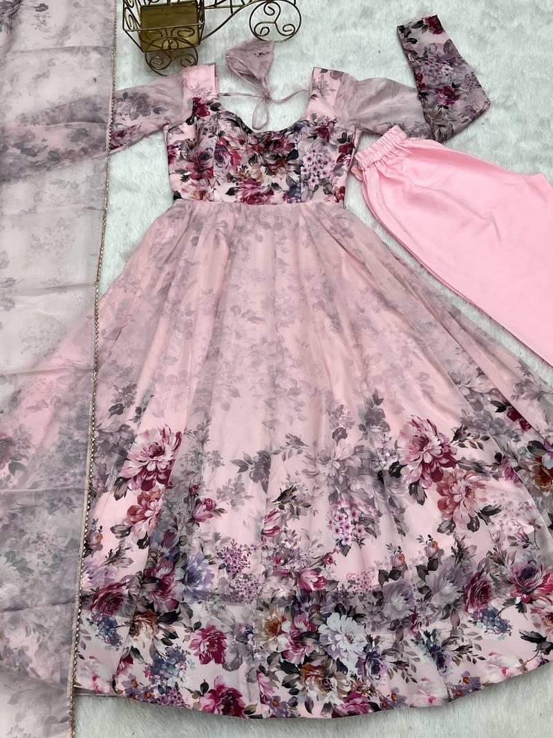Pure soft organja silk fabric fully flair kali pattern and canvas patta with duppta set ,pent ready to wear stitched