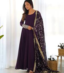 Wine georgette gown duppta full set with pent ready to wear stitched