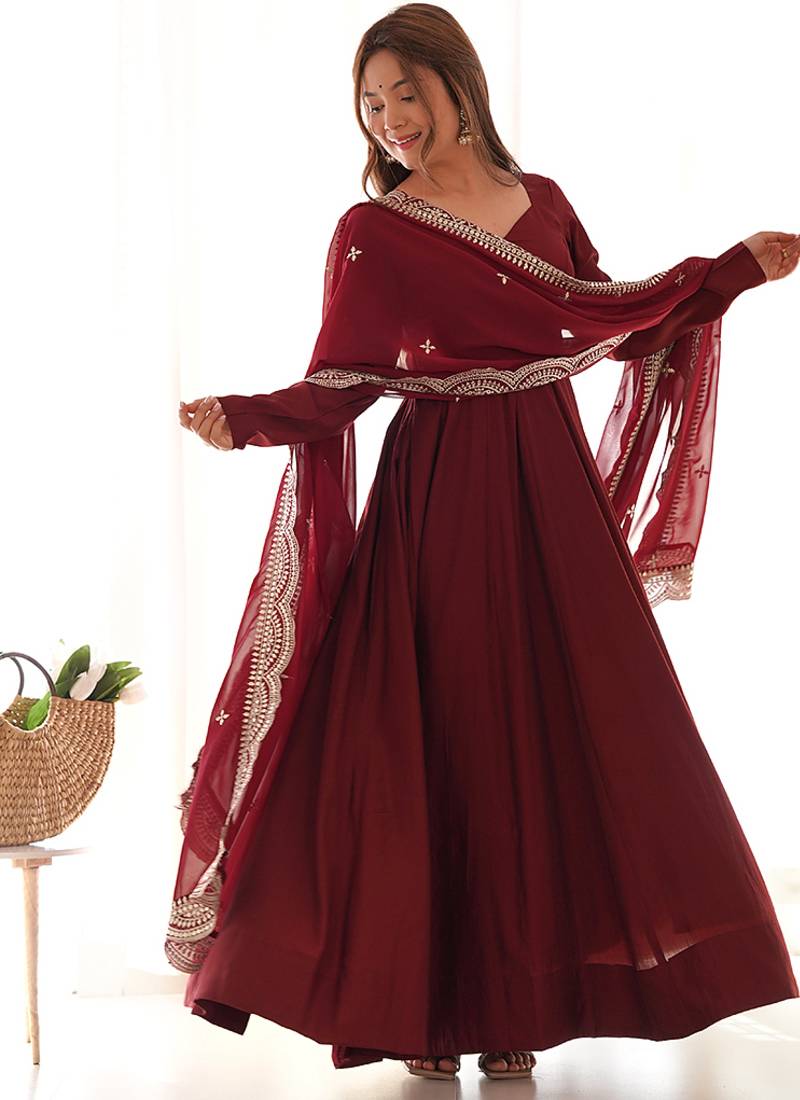 | • | Dupatta | : | Color- Maroon / Fabric- Georgette |