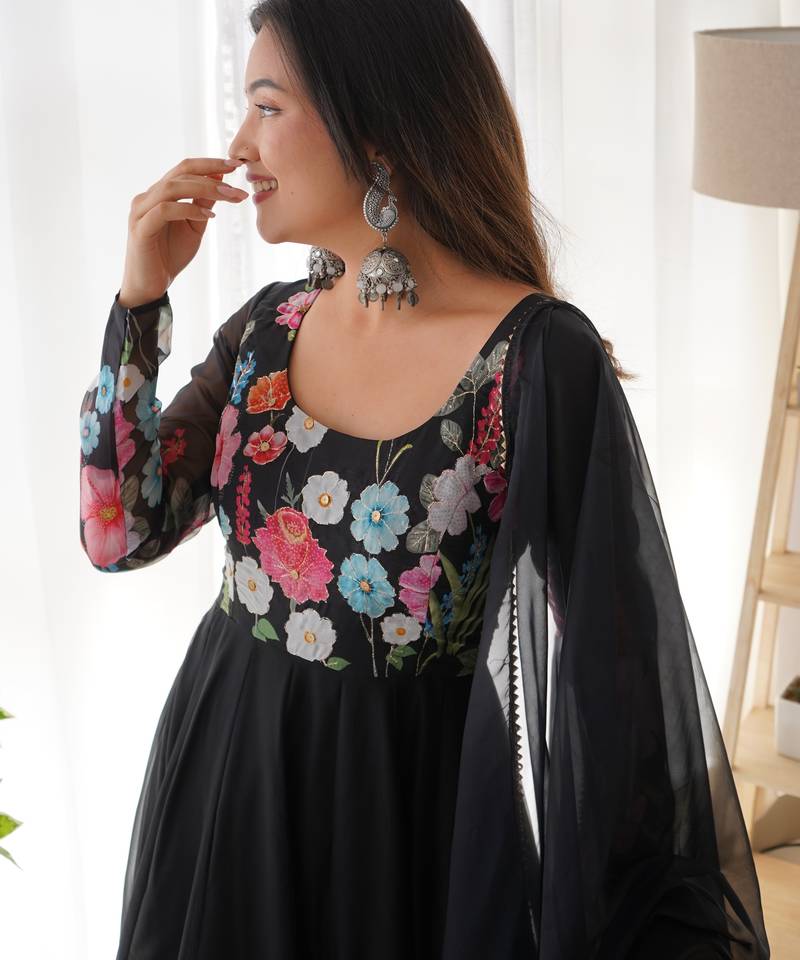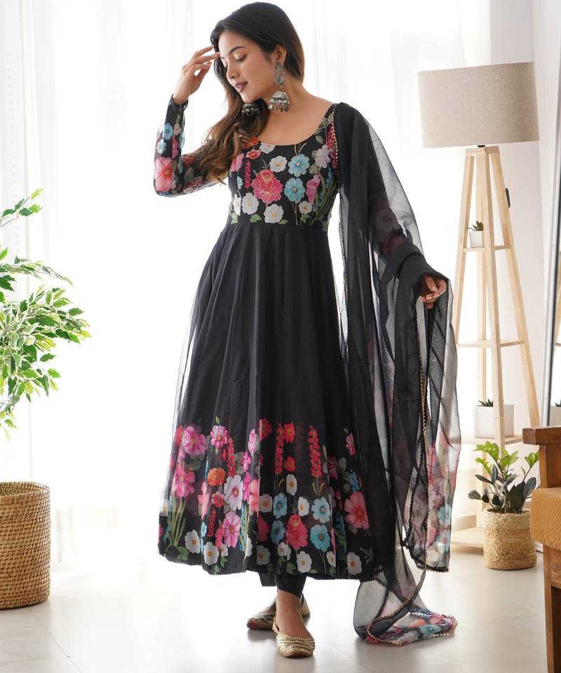 | Product Name | Women Soft Organza Silk With Print Fully Flair Anarkali Pant With Dupatta Set | |
