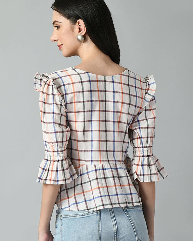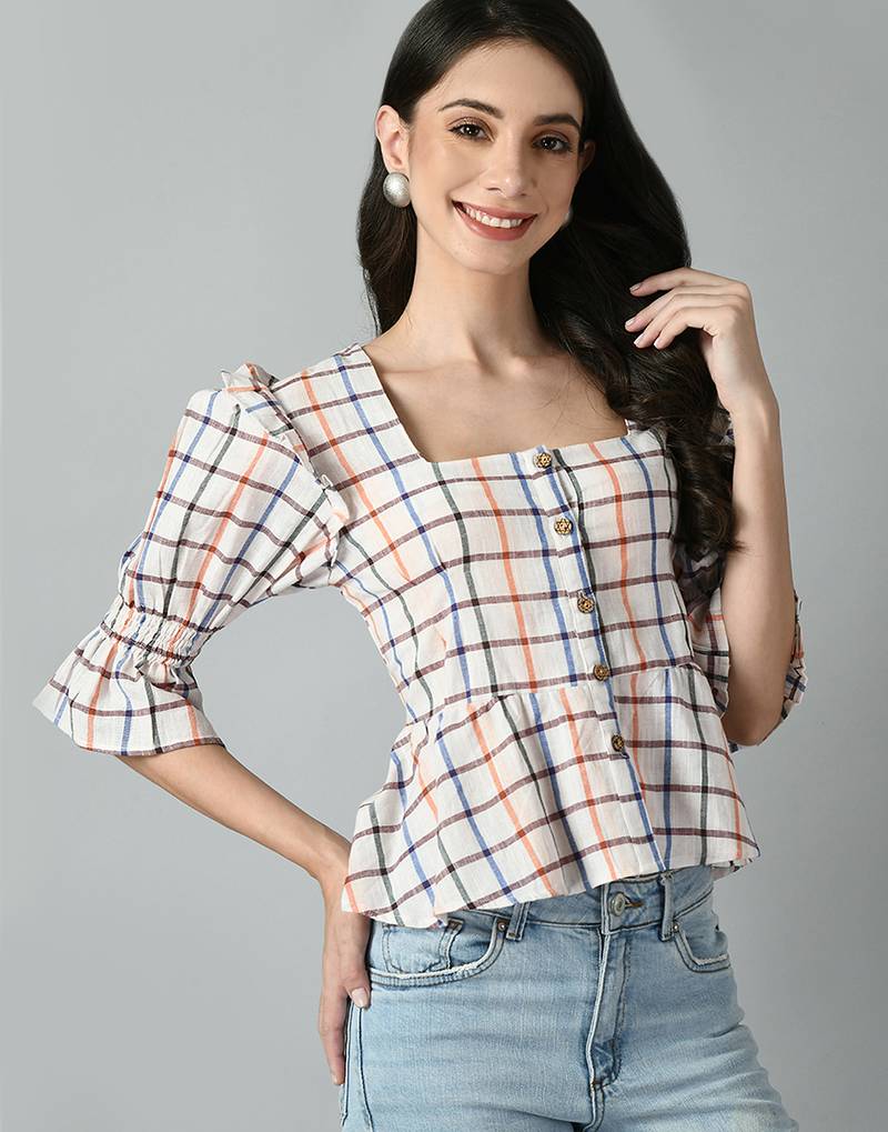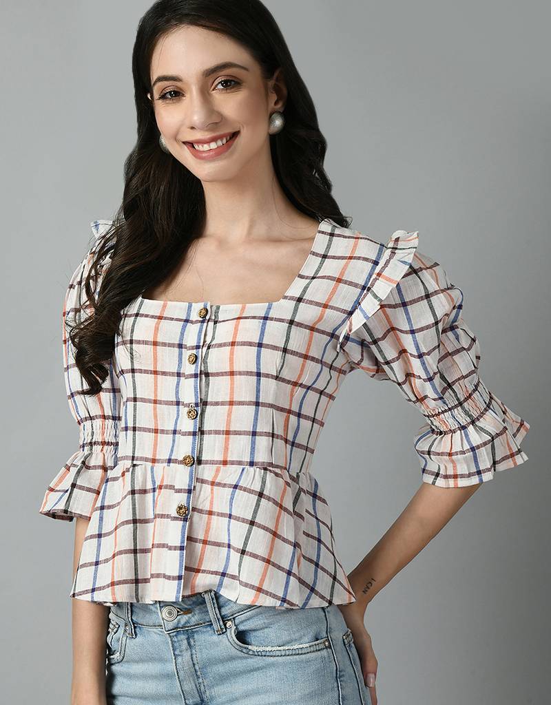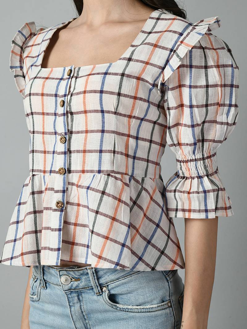 | Product Name | Checked Square Neck Puff Sleeves Pleated Detailed Peplum Top | |
