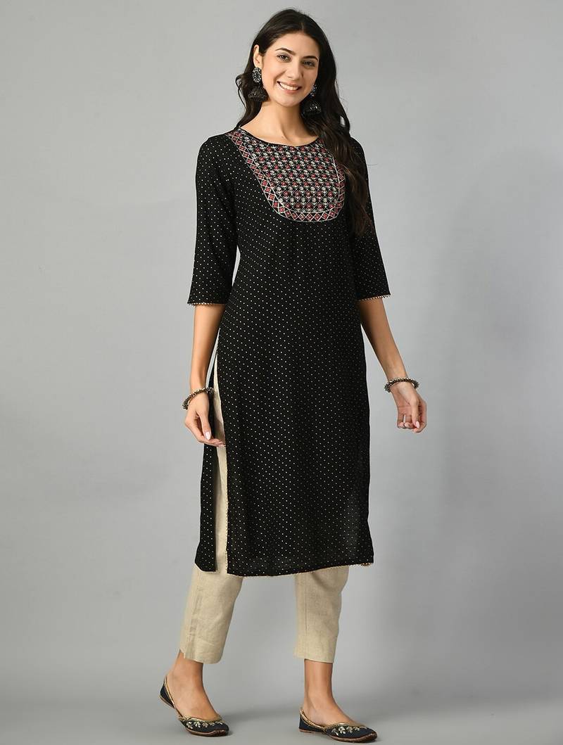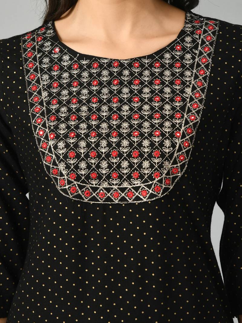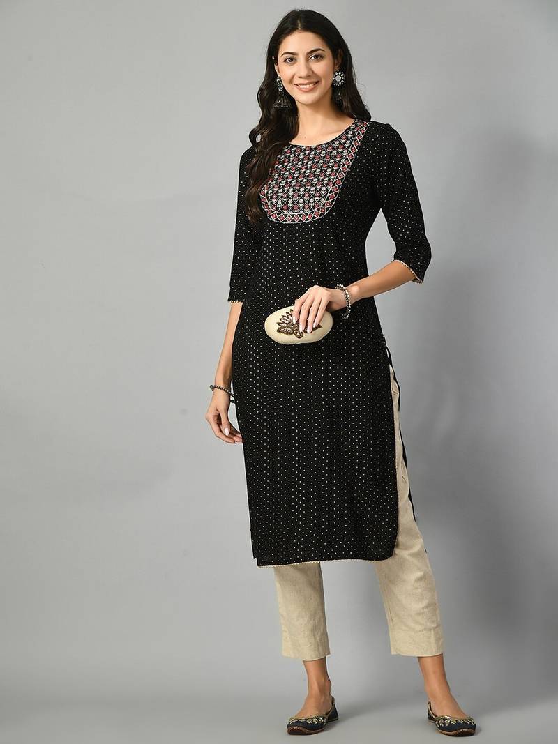 | Product Name | Polka Dots Printed Round Neck Mirror Work Straight Kurta | |