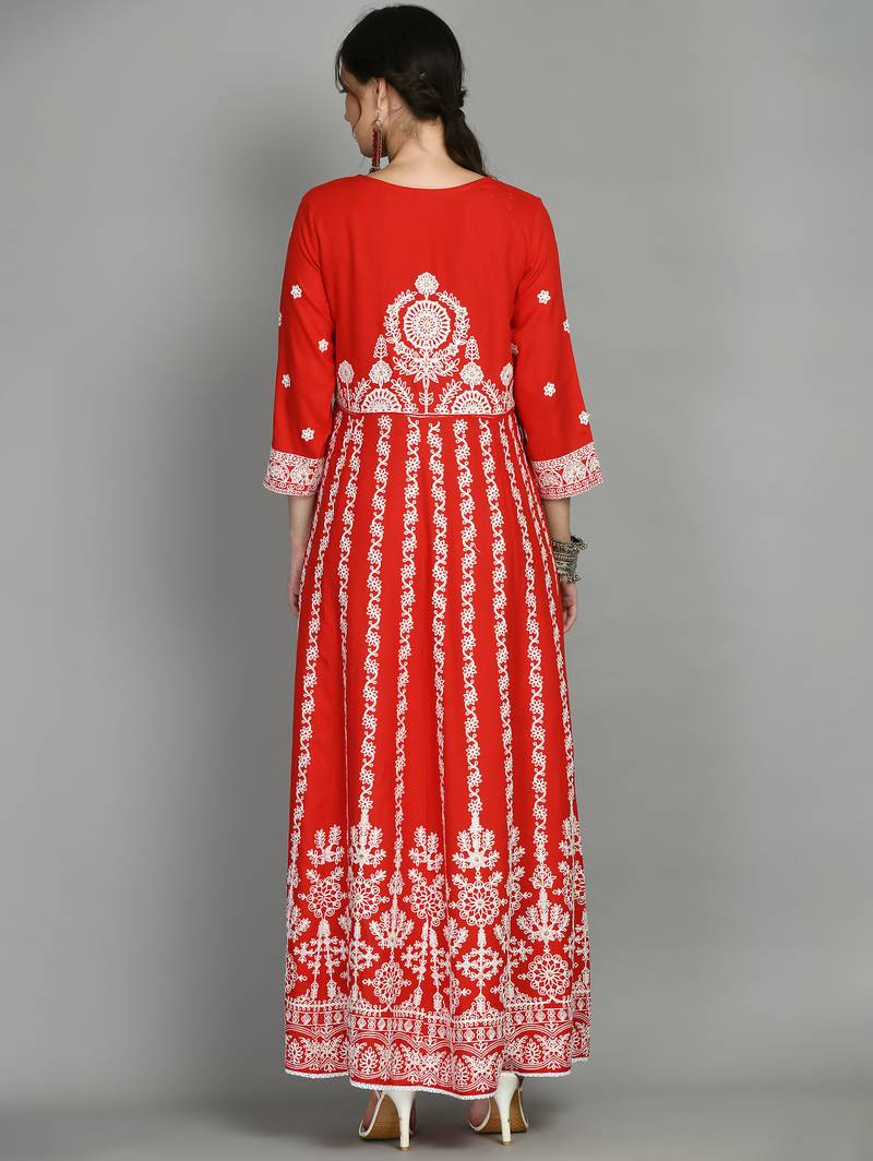 Round neck three-quarter regular sleeves anarkali with regular style beads and stones detail ankle length