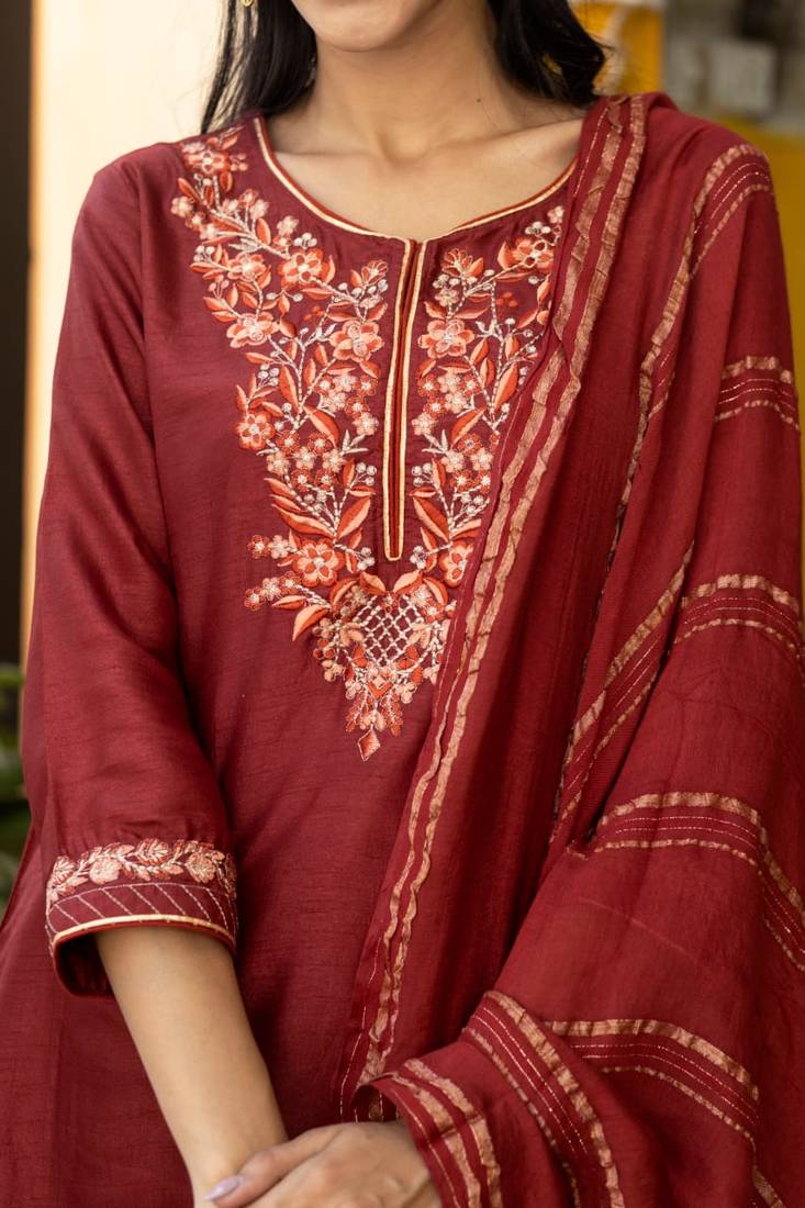 | • | Dupatta | : | Color- Maroon / Fabric- Chiffon |