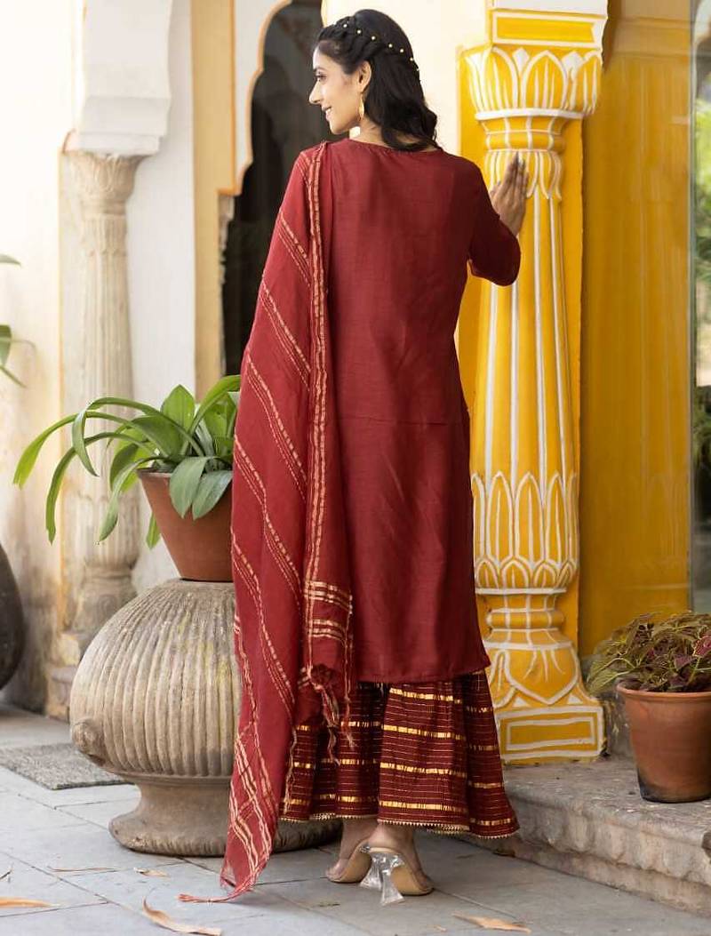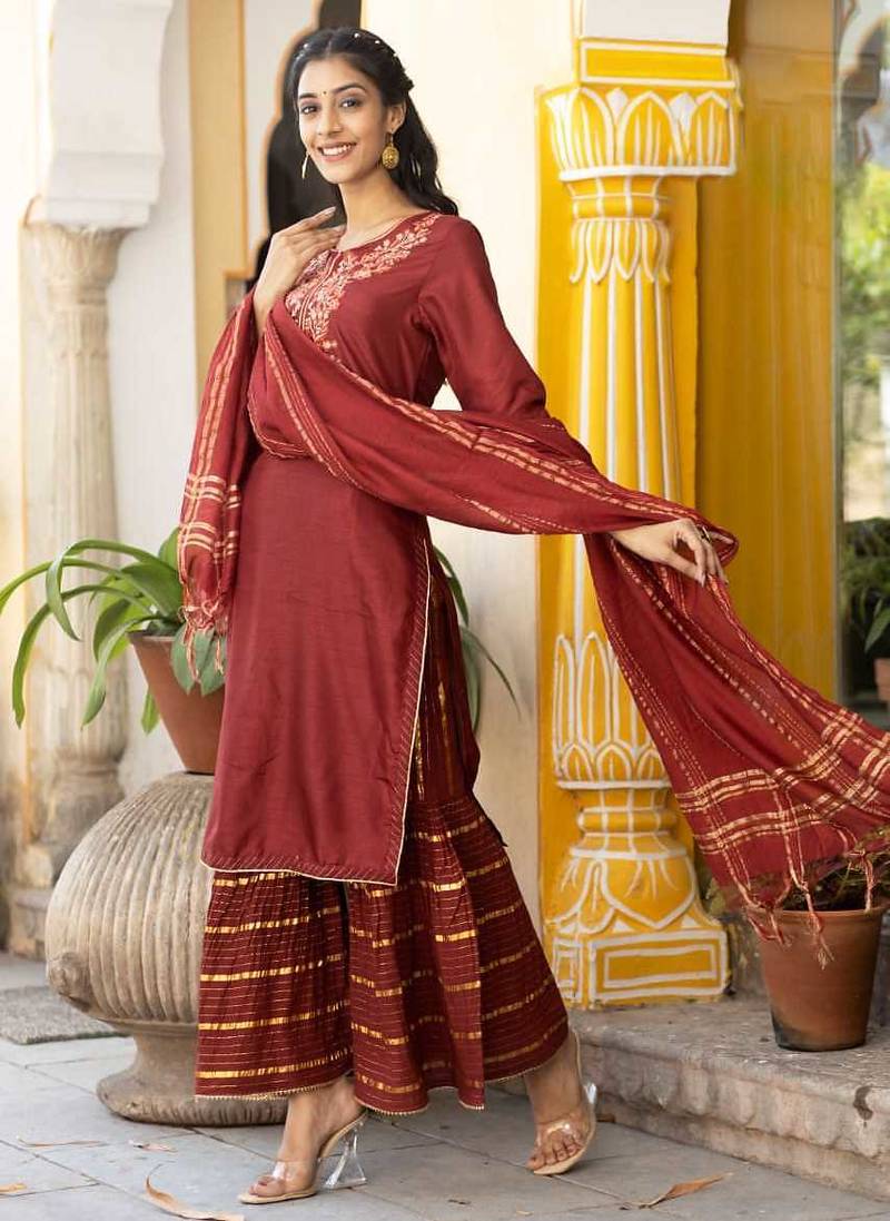 | Product Name | Women Ethnic Motifs Embroidered Regular Thread Work Kurta With Sharara & With Dupatta | |