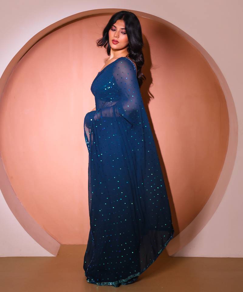 Blue georgette saree