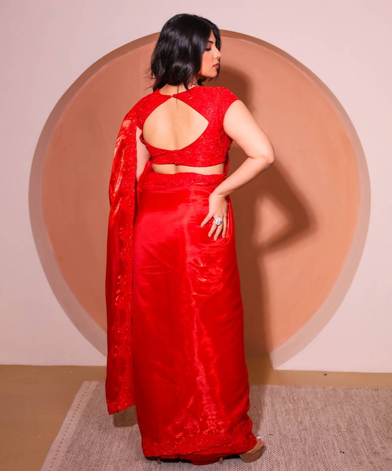 | Product Description | This Red Plain Organza Saree Exudes Elegance With Its Crisp Texture And Subtle Sheen. Crafted From Premium Organza, It Offers A Structured Yet Graceful Drape That Enhances Any Look. Perfect For Festive Events, Parties, Or Receptions, It Pairs Beautifully With Statement Blouses And Accessories For A Bold, Timeless Appearance.