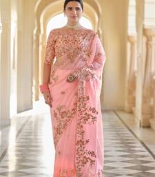 Peach organza base saree & blouse & blousewith sequins work