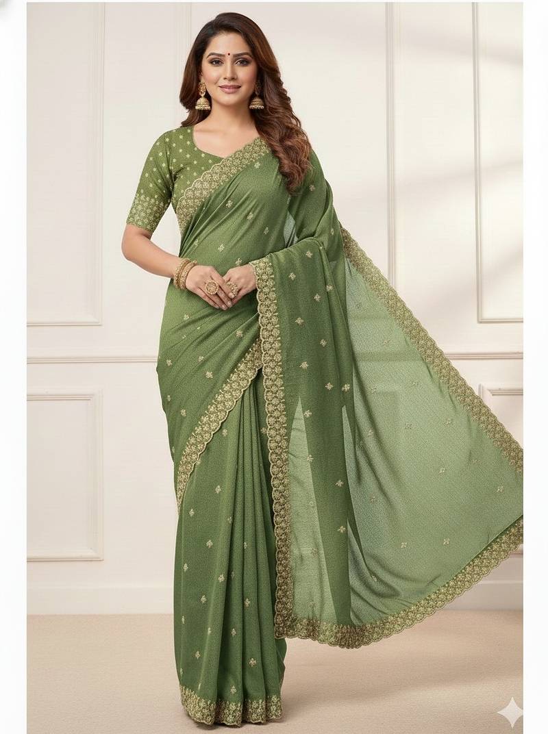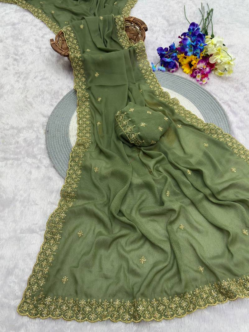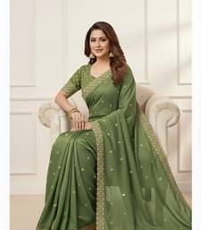 New georgette beautiful val sequence embroidered c pallu work saree with blouse set