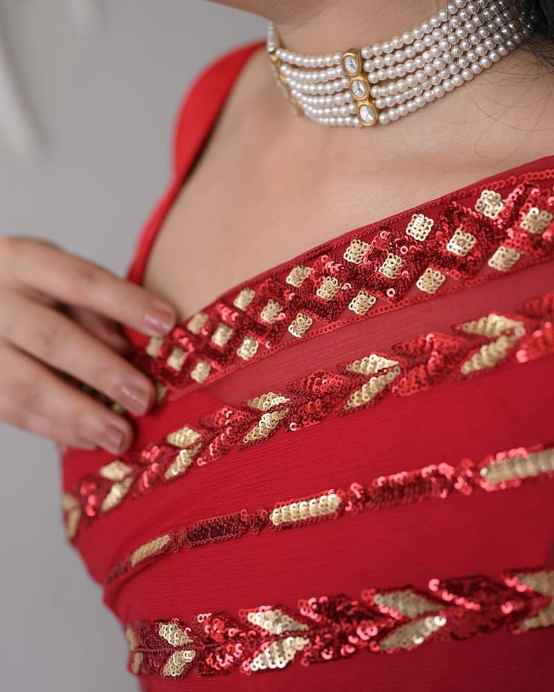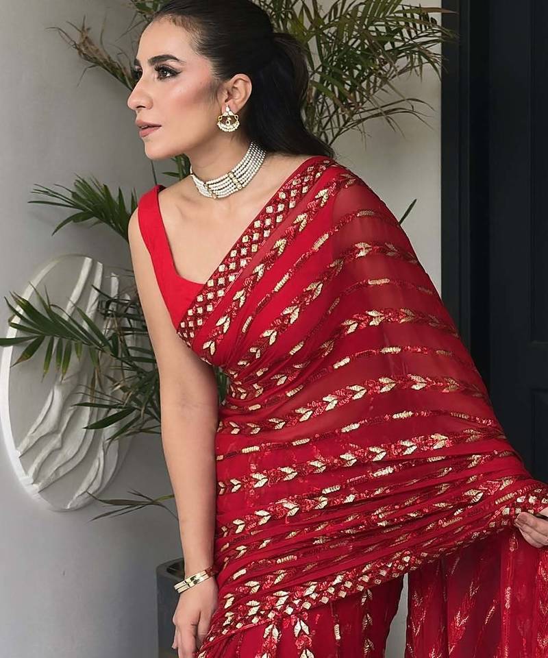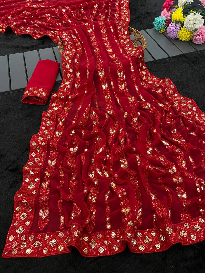 | Product Name | New Georgette Seqwance Work Red Color Women's Saree With Blouse Set | |
